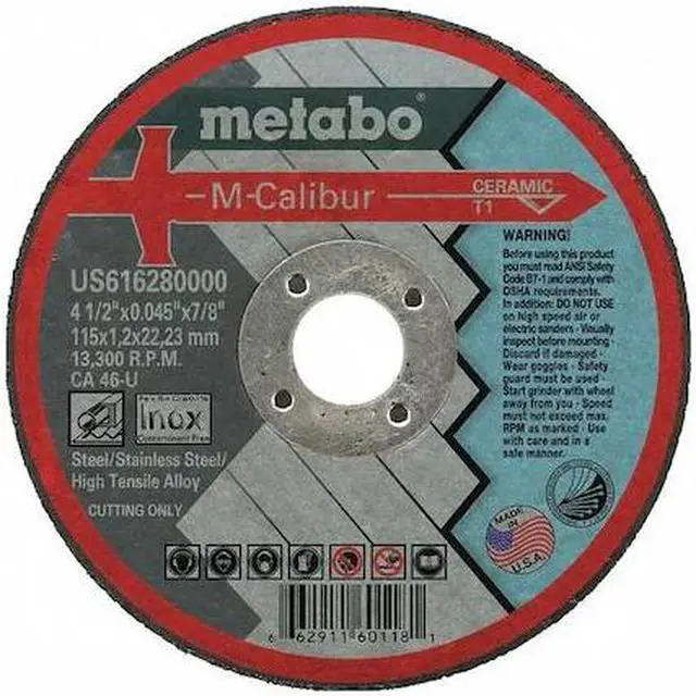 Abrasive Cut-Off Wheel, Abrasive Material Ceramic, Grit 46, Connector Size 7/8 in, Connector Type Unthreaded Hole, Overall Diameter 4 1/2 in, Overall Thickness 0.045 in, Compatible Tool Type Angle Grinder, Primary Material Application Stainless Steel, Series CA46U, Wheel Type Type 1, Maximum Operating Speed 13, 300 RPM