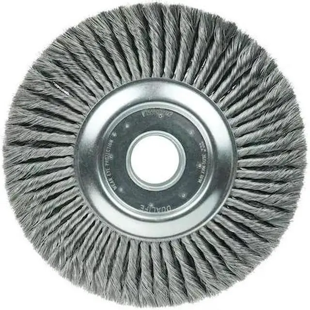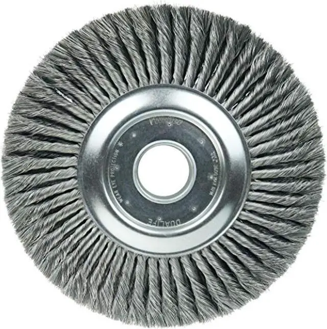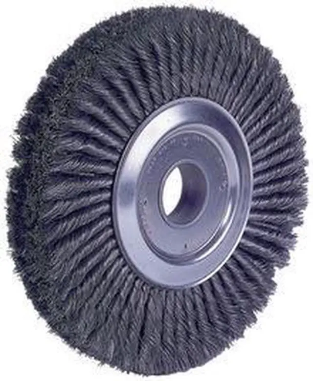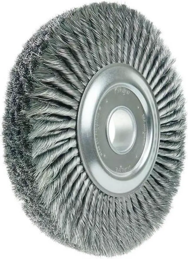 California Proposition 65: This product contains a chemical known to the State of California to cause birth defects or other reproductive harm. Weiler 12" Wide Face Standard Twist Knot Wire Wheel Brush features four rows of tightly knotted wire that are ideal for use in automated cleaning processes such as removing light mill scale from metal rod and wire. Featuring Weiler's individual knot hole construction, these radial brushes are available in heat-treated steel, type 302 stainless steel and bronze wire for use in a wide variety of applications. 2" arbor hole for use on bench and pedestal grinders. Four rows of tightly knotted wire. Ideal for use in automated cleaning processes such as removing light mill scale from metal rod and wire. Knot wire wheels with an arbor hole are intended for use on straight grinders and stationary machines such as bench or pedestal grinders and buffing lathes. Featuring Weiler's individual knot hole construction, these radial brushes are available in heat-treated steel, type 302 stainless steel and bronze wire for use in a wide variety of applications..
