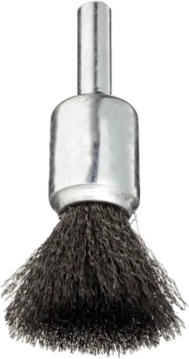 End Brush, Product Type End Brush, Quick Change System Not Applicable, Bristle Type Crimped Wire, Bristle Material Carbon Steel, Brush Dia. 1/2 in, Wire Dia. 0.006 in, Bristle Length 7/8 in, Grit Not Applicable, Overall Length 2 1/2 in, Compatible Tool Type Die Grinder, Drill, Impact Driver, Pencil Grinder, Straight Grinder, Color Silver, Primary Material Application Carbon Steel, Cast Iron, Connector Type Round Shank, Connector Size 1/4 in, Operating Speed - Maximum 25, 000 RPM. This item has been restricted from sale in the following state (s): []