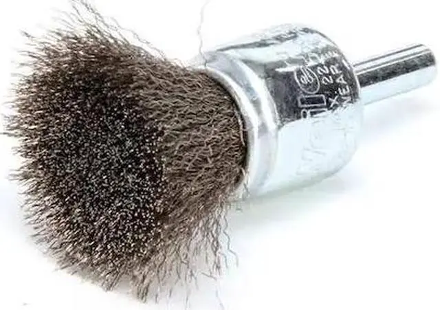 End Brush, Product Type End Brush, Quick Change System Not Applicable, Bristle Type Crimped Wire, Bristle Material Stainless Steel, Brush Dia. 3/4 in, Wire Dia. 0.006 in, Bristle Length 7/8 in, Grit Not Applicable, Overall Length 2 1/4 in, Compatible Tool Type Straight Grinder, Drill, Impact Driver, Pencil Grinder, Color Silver, Primary Material Application Carbon Steel, Stainless Steel, Connector Type Round Shank, Connector Size 1/4 in, Operating Speed - Maximum 22, 000 RPM, Shank Length 5/8 in.