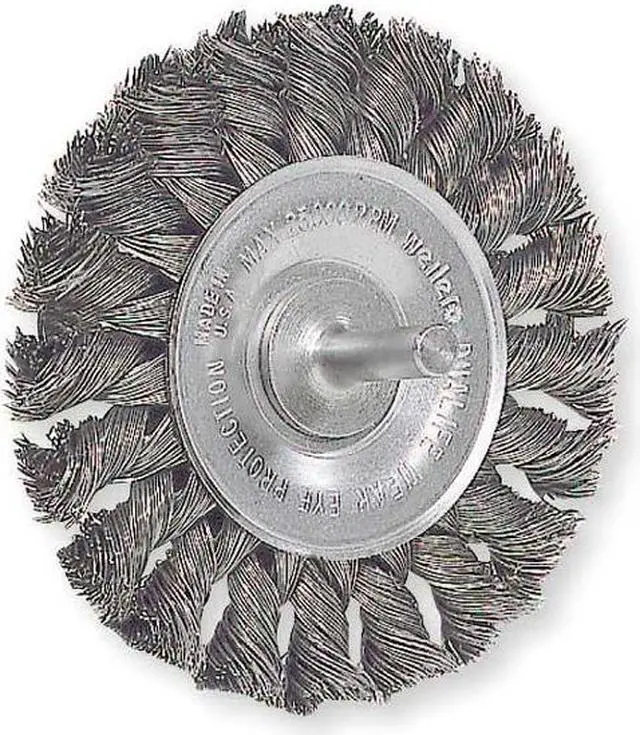 Wire Wheel Brush, Bristle Type Standard Twist Knot Wire, Product Type Wire Wheel Brush, Bristle Material Carbon Steel, Brush Dia. 4 in, Grit Not Applicable, Face Width 1/2 in, Bristle Diameter 0.014 in, Bristle Length 7/8 in, Compatible Tool Type Die Grinder, Drill Press, Pencil Grinder, Straight Grinder, Primary Material Application Carbon Steel, Connector Type Round Shank, Connector Size 1/4 in, Operating Speed - Maximum 20, 000 RPM, Color Not Applicable. This item has been restricted from sale in the following state (s): []