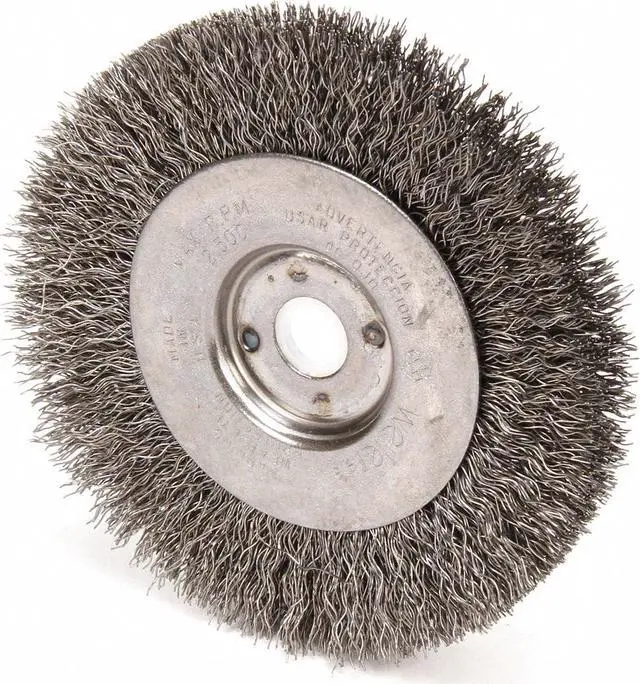 Wire Wheel Brush, Bristle Type Crimped Wire, Product Type Wire Wheel Brush, Bristle Material Carbon Steel, Brush Dia. 4 in, Grit Not Applicable, Face Width 1/2 in, Bristle Diameter 0.012 in, Bristle Length 7/8 in, Compatible Tool Type Die Grinder, Drill Press, Pencil Grinder, Straight Grinder, Primary Material Application Carbon Steel, Connector Type Threaded Hole, Connector Size 1/2 in to 3/8 in, Operating Speed - Maximum 12, 500 RPM, Color Not Applicable. This item has been restricted from sale in the following state (s): []