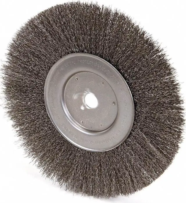 Wire Wheel Brush, Bristle Type Crimped Wire, Product Type Wire Wheel Brush, Bristle Material Carbon Steel, Brush Dia. 10 in, Grit Not Applicable, Face Width 3/4 in, Bristle Diameter 0.014 in, Bristle Length 2 1/2 in, Compatible Tool Type Bench Grinder, Primary Material Application Carbon Steel, Connector Type Threaded Hole, Connector Size 3/4 in, Operating Speed - Maximum 4, 500 RPM, Shank Length Not Applicable, Color Not Applicable. This item has been restricted from sale in the following state (s): []