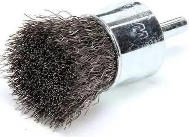 End Brush, Product Type End Brush, Quick Change System Not Applicable, Bristle Type Crimped Wire, Bristle Material Carbon Steel, Brush Dia. 1 in, Wire Dia. 0.01 in, Bristle Length 3/8 in, Grit Not Applicable, Overall Length 3 in, Compatible Tool Type Die Grinder, Drill, Impact Driver, Pencil Grinder, Straight Grinder, Color Silver, Primary Material Application Carbon Steel, Cast Iron, Connector Type Round Shank, Connector Size 1/4 in, Operating Speed - Maximum 22, 000 RPM, Shank Length 5/8 in.