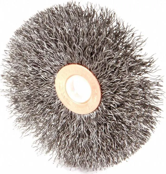 Wire Wheel Brush, Bristle Type Crimped Wire, Product Type Wire Wheel Brush, Bristle Material Carbon Steel, Brush Dia. 3 in, Grit Not Applicable, Face Width 5/8 in, Bristle Diameter 0.012 in, Bristle Length 1 in, Compatible Tool Type Die Grinder, Drill Press, Pencil Grinder, Straight Grinder, Primary Material Application Carbon Steel, Connector Type Threaded Hole, Connector Size 1/2 in to 3/8 in, Operating Speed - Maximum 25, 000 RPM, Color Not Applicable. This item has been restricted from sale in the following state (s): []