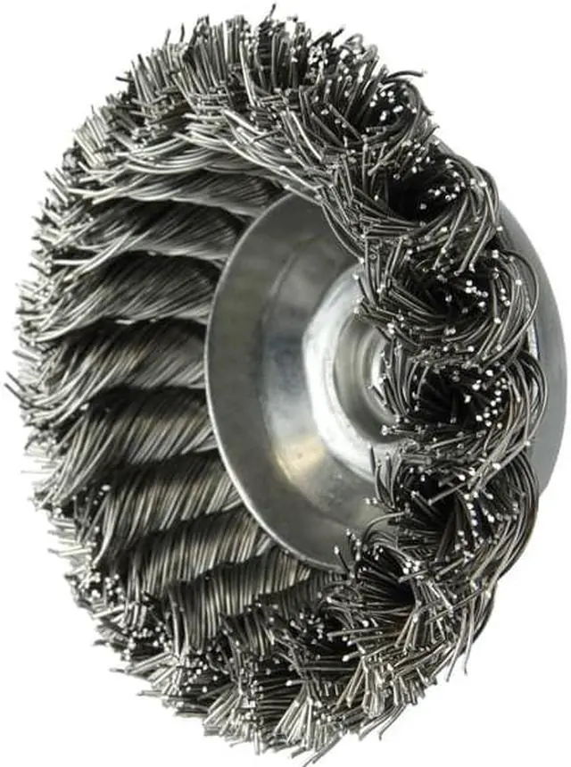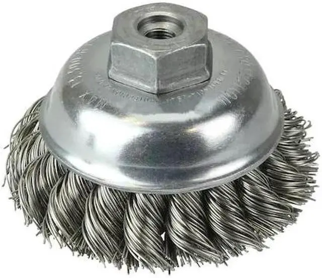 California Proposition 65: This product contains a chemical known to the State of California to cause cancer. Weiler 3-1/2" Single Row Knot Wire Cup Brush provides a heavy-duty brushing action with some flexibility for demanding cleaning applications on relatively flat surfaces. 3/8"-24 nut for use on right angle grinders. Provide heavy duty brushing action with some flexibility. Ideal for demanding cleaning applications on relatively flat surfaces.. Suitable for right angle grinder tool usage..