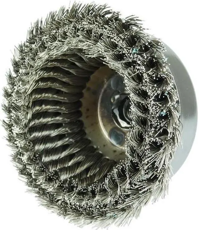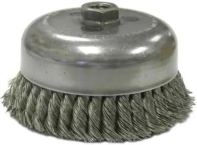 California Proposition 65: This product contains a chemical known to the State of California to cause cancer. Weiler 6" Double Row Knot Wire Cup Brush provides very aggressive brushing action while still maintaining some flexibility. Ideal for Severe Cleaning Applications. 5/8"-11 nut for use on right angle grinders. Provides very aggressive brushing while still maintaining some flexibility. Ideal for severe cleaning applications. Suitable for right angle grinder tool usage...