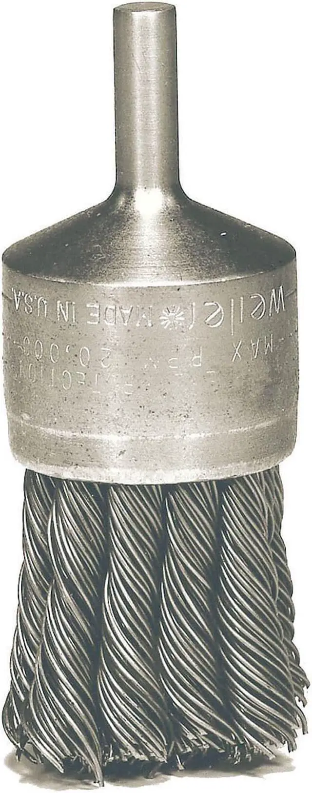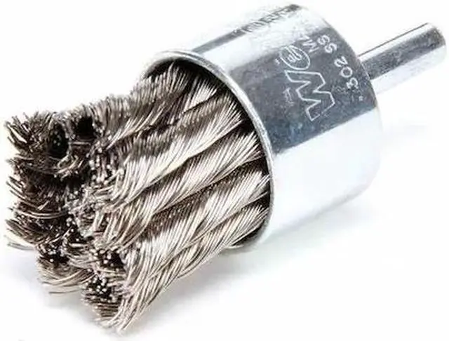 End Brush, Product Type End Brush, Quick Change System Not Applicable, Bristle Type Standard Twist Knot Wire, Bristle Material Stainless Steel, Brush Dia. 1 1/8 in, Wire Dia. 0.014 in, Bristle Length 1/4 in, Grit Not Applicable, Overall Length 3 in, Compatible Tool Type Die Grinder, Drill, Impact Driver, Pencil Grinder, Straight Grinder, Color Silver, Primary Material Application Aluminum, Brass, Bronze, Copper, Nickel Alloy, Stainless Steel, Titanium, Connector Type Round Shank. This item has been restricted from sale in the following state (s): []
