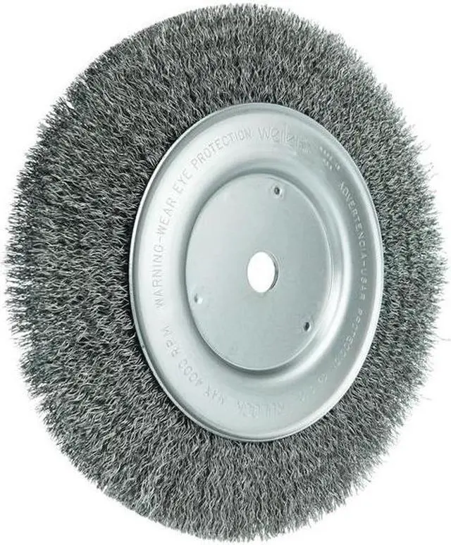 California Proposition 65: This product contains a chemical known to the State of California to cause birth defects or other reproductive harm. Weiler 8" Maximum Density Crimped Wire Wheel Brush features increased fill density for greater brushing action, longer life and consistent performance in the most demanding applications requiring the flexibility of a crimped wire wheel. 5/8" arbor hole for use on bench/pedestal grinders. Increased fill density for greater brushing action. Consistent performance. Longer life in the most demanding applications requiring the flexibility of a crimped wire wheel.