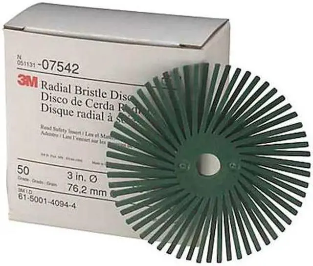 Radial Bristle Disc, Bristle Type Type A, Product Type Radial Bristle Disc, Bristle Material Ceramic, Brush Dia. 3 in, Grit 50, Face Width Not Applicable, Bristle Diameter 3 in, Bristle Length Not Applicable, Compatible Tool Type Die Grinder, Pencil Grinder, Straight Grinder, Primary Material Application Aluminum, Brass, Bronze, Cast Iron, Stainless Steel, Steel, Connector Type TR Quick-Change, Connector Size Not Applicable, Operating Speed - Maximum 25, 000 RPM, Color Green, Series RR-ZB