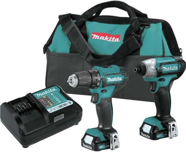 The CXT 12V Max Brushless Lithium-Ion Cordless Combo Kit includes a 3/8 in. Drill Driver (FD09Z), 1/4 in. Impact Driver (DT03Z), (2) CXT 12V Max 1.5 Ah Lithium-Ion batteries, and a Contractor Tool Bag. The 3/8 in. Drill Driver delivers power and speed in an ultra-compact size for efficient drilling, driving, and fastening. It has 2 speeds (0-450 and 0-1700 RPM) and delivers up to 250 in. lbs. of Max Torque.