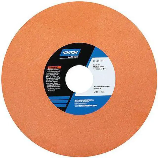 Aluminum Oxide, Connector Size 1 1/4 in, Connector Type Unthreaded Hole, Grit 220, Overall Diameter 7 in, Overall Thickness 1/2 in, Compatible Tool Type Cylindrical Grinder, Surface Grinder, Tool and Cutter Grinder, Primary Material Application Nickel Alloy, Steel, Tool Steel, Specification 38A220-QV, Wheel Hardness Q, Wheel Type Type 1, Maximum Operating Speed 3, 600 RPM, Series 38A, Grade Very Fine, Bond Type Vitrified, Color Orange, Item Straight Grinding Wheel, Package Quantity 5. This item has been restricted from sale in the following state (s): []
