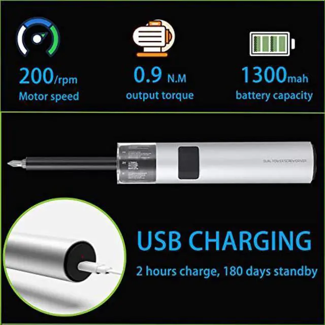 • USB CHARGING & LED LIGHTS - WOWSTICK rechargeable screwdriver has a built-in 1300 mAh lithium battery with a charge time of 40 minutes and 2 hours of continuous use. when the power is insufficient, manual power can be used instead of automatic power, and with 3 LED lights, so it can easily work even in dark environments, saving you time and ensuring high efficiency.
