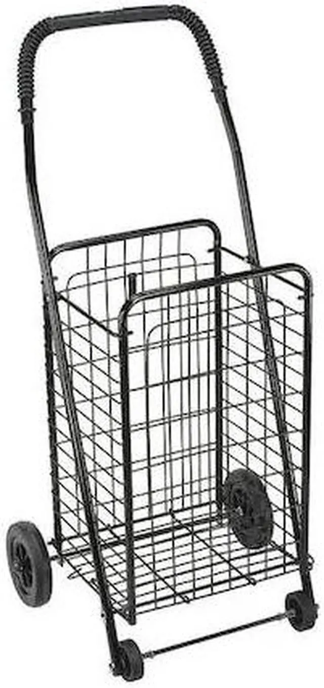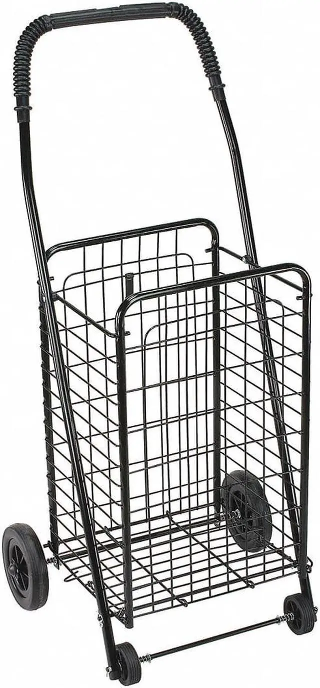 Folding Shopping Cart, Shopping Cart Style Folding, Load Capacity 90 lb, Basket Material Steel, Basket Finish/Coating Powder Coated, Frame Material Steel, Frame Finish/Coating Powder Coated, Caster/Wheel Configuration (4) Axle-Mounted, Color Black, Overall Height 36 in, Overall Length 17 in, Overall Width 15 in, Basket Length 12 in