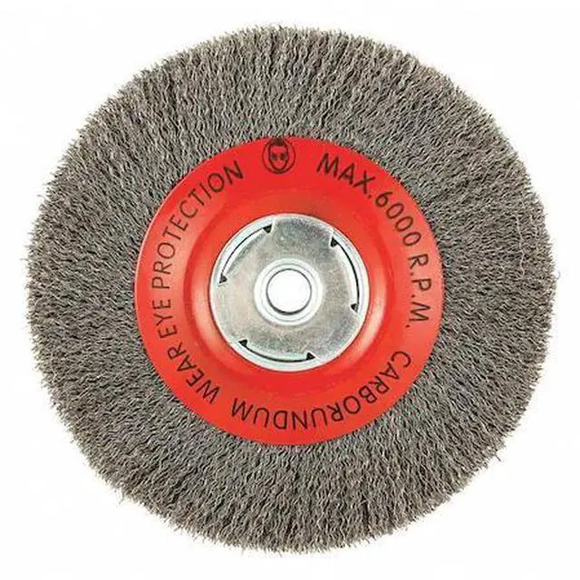 Wire Wheel Brush, Bristle Type Crimped Wire, Product Type Wire Wheel Brush, Bristle Material Carbon Steel, Brush Dia. 8 in, Grit Not Applicable, Face Width 3/4 in, Bristle Diameter 0.014 in, Bristle Length 1 3/4 in, Compatible Tool Type Bench Grinder, Pedestal Grinder, Angle Grinder, Connector Type Threaded Hole, Connector Size 5/8 in, Operating Speed - Maximum 6, 000 RPM, Shank Length Not Applicable, Color Not Applicable. This item has been restricted from sale in the following state (s): []