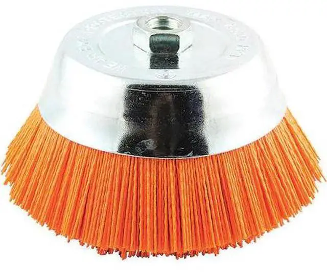 Cup Brush, Product Type Cup Brush, Quick Change System Not Applicable, Bristle Type Crimped Wire, Bristle Material Abrasive Nylon, Brush Dia. 6 in, Wire Dia. 0.04 in, Bristle Length 1 5/16 in, Overall Length Not Applicable, Compatible Tool Type Right-Angle Grinder, Connector Type Threaded Hole, Connector Size 5/8 In. -11, Operating Speed - Maximum 6, 500 RPM, Shank Length Not Applicable. This item has been restricted from sale in the following state (s): []