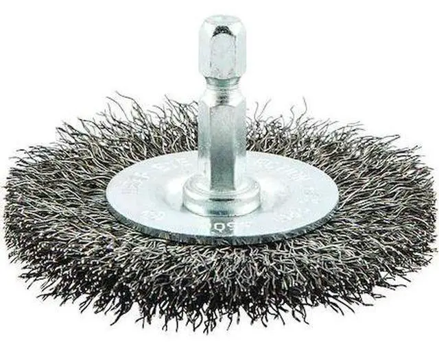 Wire Wheel Brush, Bristle Type Crimped Wire, Product Type Wire Wheel Brush, Bristle Material Carbon Steel, Brush Dia. 2 1/2 in, Grit Not Applicable, Face Width 3/8 in, Bristle Diameter 0.009 in, Bristle Length 1/2 in, Compatible Tool Type Die Grinder, Drill Press, Pencil Grinder, Straight Grinder, Connector Type Round Shank, Connector Size 1/4 in, Operating Speed - Maximum 4, 500 RPM, Color Not Applicable. This item has been restricted from sale in the following state (s): []