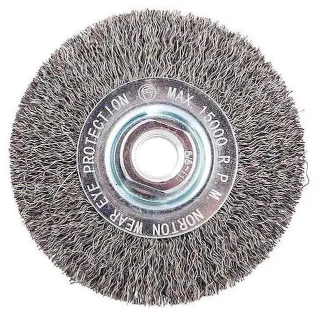 Wire Wheel Brush, Bristle Type Crimped Wire, Product Type Wire Wheel Brush, Bristle Material Carbon Steel, Brush Dia. 4 in, Grit Not Applicable, Face Width 7/16 in, Bristle Diameter 0.014 in, Bristle Length 7/8 in, Compatible Tool Type Angle Grinder, Connector Type Threaded Hole, Connector Size 5/8 In. -11, Operating Speed - Maximum 15, 000 RPM, Shank Length Not Applicable, Color Not Applicable, Series Gemini. This item has been restricted from sale in the following state (s): []