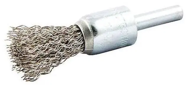 End Brush, Product Type End Brush, Quick Change System Not Applicable, Bristle Type Crimped Wire, Bristle Material Stainless Steel, Brush Dia. 1/2 in, Wire Dia. 0.014 in, Bristle Length 1 in, Grit Not Applicable, Overall Length 2 3/4 in, Compatible Tool Type Straight Grinder, Drill Press, Impact Driver, Pencil Grinder, Color Not Applicable, Primary Material Application Aluminum, Brass, Copper, Stainless Steel, Wood, Connector Type Round Shank, Connector Size 1/4 in. This item has been restricted from sale in the following state (s): []