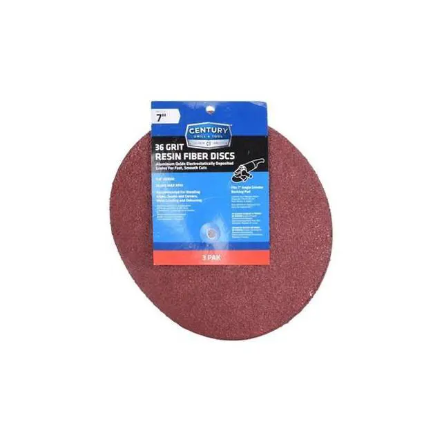 Century's Resin Fiber Discs, abrasive aluminum oxide resin fiber sanding discs, have electrostatically deposited grains for fast smooth cutting action. High resistance to heat, glazing, and loading. Are excellent on ferrous and non ferrous metals. Recommended for blending edges, seams and corners, weld grinding, and deburring. 3-PACK