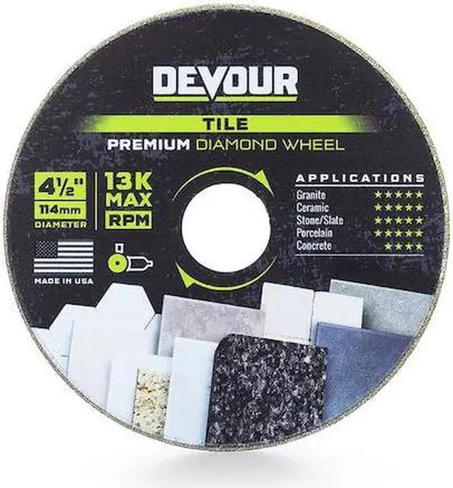 The DEVOUR PREMIUM METAL Blades have up to 100X longer life than standard abrasive wheels for cutting in a wide variety of materials. For use on grinders and saws. Very effective and fast cutting performance on all types of tile including granite, porcelain, ceramic, and natural stone. Cut Wet or dry. Superior life, finish of cut, and speed as compare to traditional metal bond wheels.