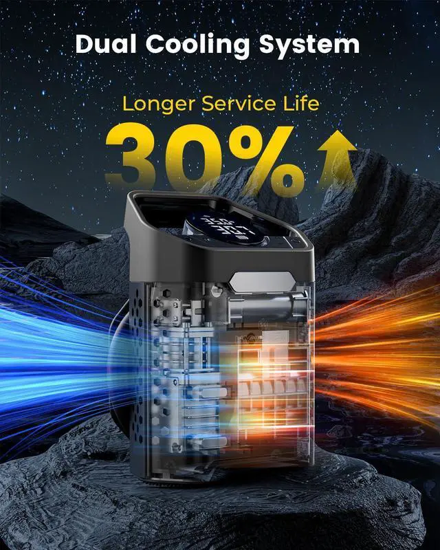 Heavy-Duty 160 PSI Tire Inflator Portable Air Compressor, 1 Min Fast Inflation Cordless Portable Air Pump with Digital Pressure Gauge & LED Light, Electric Tire Pump for Car, SUV, Bike, Ball