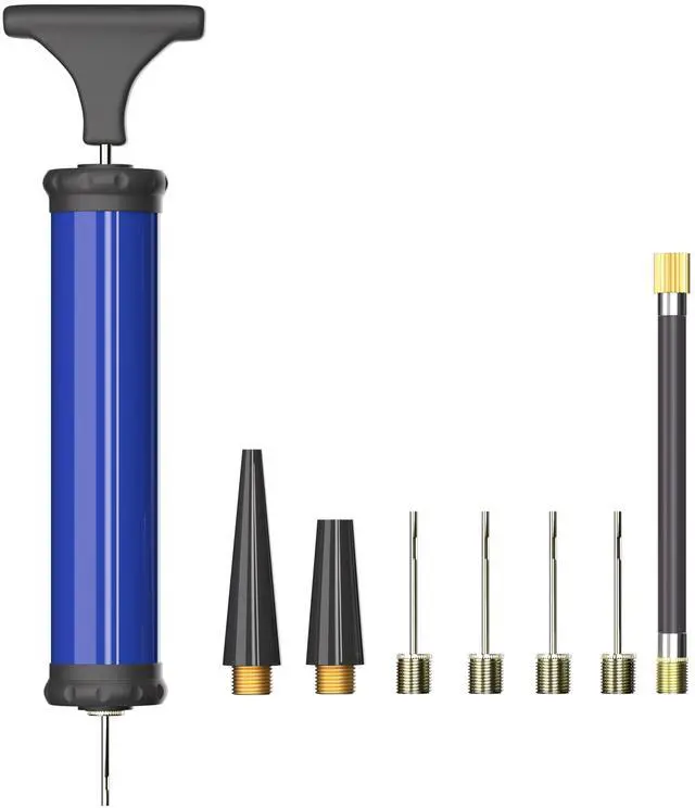 Comes with 4 metal pin needles/1 removable and flexible rubber hose/2 tapered nozzle. Highly recommend you to use the flexible rubber hose and a pin needles to pump up any sport balls, Soccer Basketball Footba Volleyball Water Polo ball Rugby Netball Gym Ball Yoga ball.