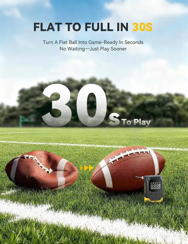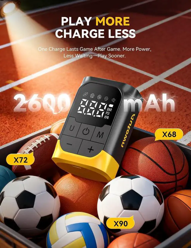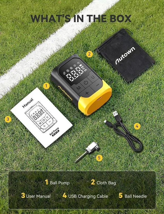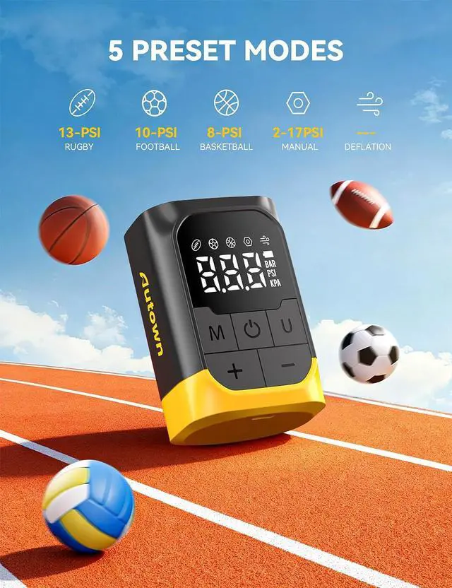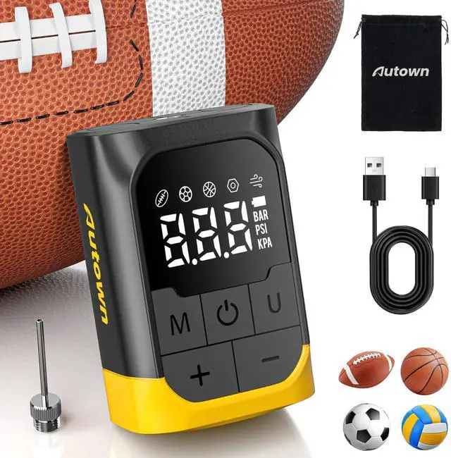 AUTOWN Smart Electric Ball Pump for Sports Balls, 17 PSI High-Pressure Basketball Pump with 2600mAh Battery, Digital LCD Display & Accurate Pressure Gauge, Fast Inflation & Deflation for Soccer, Rugby
