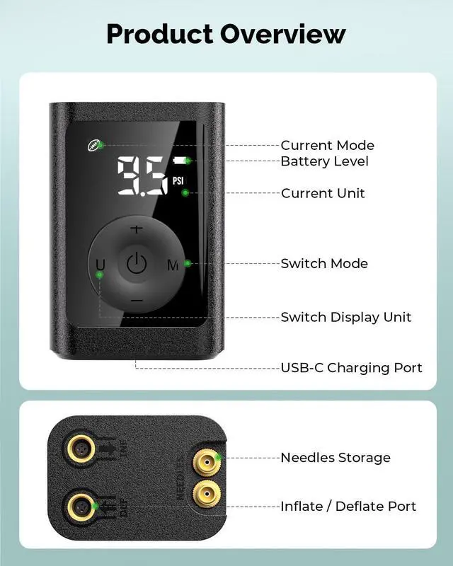 ![]() P300 Ball Pump | ![]() P300 Plus Ball Pump | ![]() P200 Ball Pump | ![]() A101 Ball Needles 4 Pack | ![]() A102 Ball Needles 12 Pack | ![]() Pencil Tire Gauge | ![]() 30W Type C Charger Block |