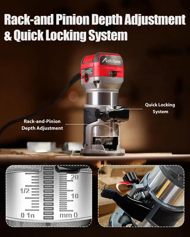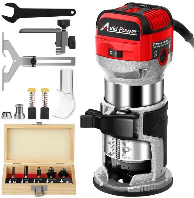 | Included Components | 1 Pair of Carbon Brushes, 1 x 3/8" Collet; 1 x 1/4" Collet; 5 x Router Bits, 1 x Compact Router, 1 x Edge Guide; 1 x Roller Guide, 1 x Wrench |