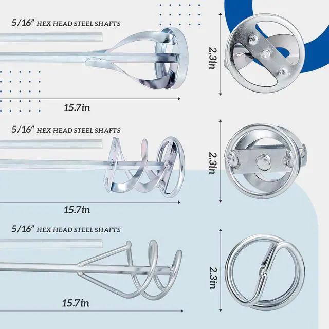 Suitable Size: our paint mixers have 15.7" long mixing paddles and 2.3" tipped mixing impeller in 3 different shapes, ideal for different mixing needs