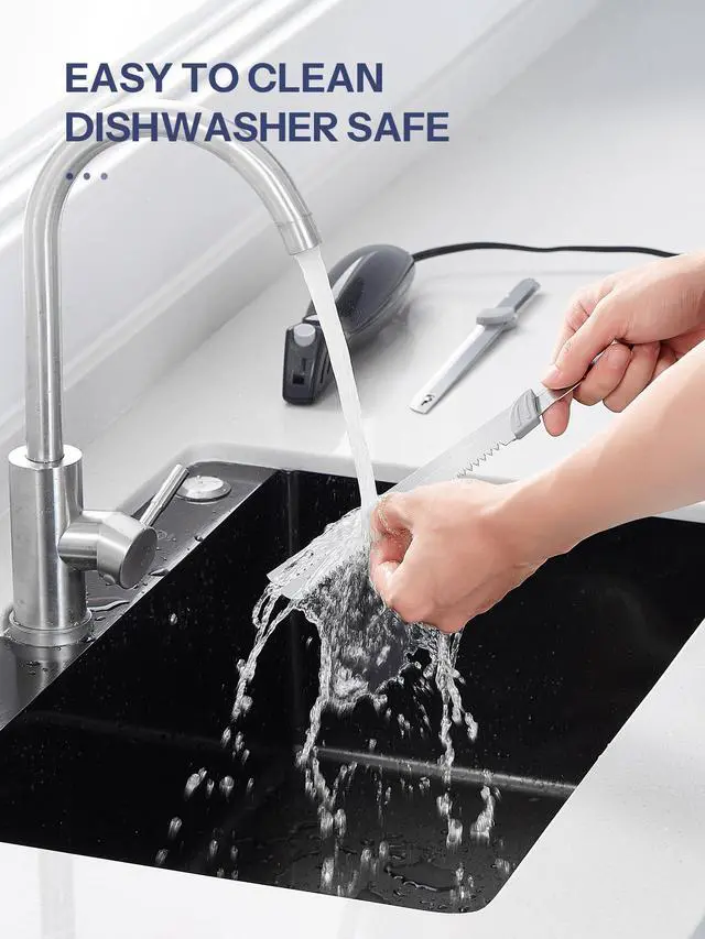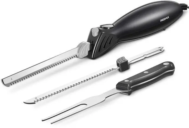 The Reemix electric knife comes with 2 different blades. Meat blade has sharper teeth, perfect for cutting cooked and raw meat.