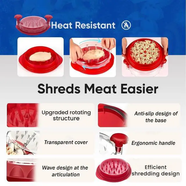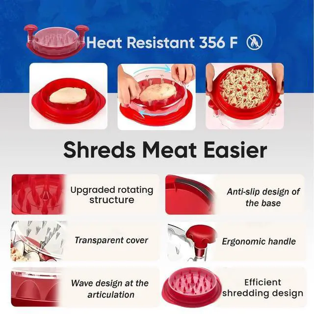 SHREDS MEAT IN SECONDS CLEANER, FASTER MEAL PREP Press, twist, and enjoy perfectly shredded chicken, pulled pork, beef, or turkey in under 30 seconds. Ideal for tacos, salads, BBQ sliders, and more. Say goodbye to messy forks and wobbly tools this is the upgrade your kitchen deserves.