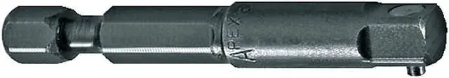 The Apex EX-250-6 is a 6 long, 1/4 hex extension for 1/4 square drive sockets. It is made of tool steel and features a pin lock. Apex EX-250-6 Specifications: Brand: Apex® Product Type: Hex Extension Drive Size: 1/4 1/4in Drive Type: Hex Square Overall Length: 6in Material: Tool Steel Material Category: Metal End A Size: 1/4in End B Size: 1/4in End A Gender: Male End B Gender: Male For Use With: 1/4 in Square Drive Sockets This listing is for Each Brand Name: Apex Product Type: Hex Extension Drive Size: 1/4; 1/4in Drive Type: Hex; Square Overall Length: 6in Material: Tool Steel Material Category: Metal End A Size: 1/4in End B Size: 1/4in End A Gender: Male End B Gender: Male For Use With: 1/4 in Square Drive Sockets Length: 6in Type: Hex x Square