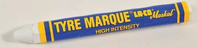 Tire Marker, White, Size 1/2 in W x 4-5/8 in L, Material Wax, Operating Temp. -20 Degrees to 130 Degrees F, Features 1 Specific Gravity, 400 Degrees F Flash Point, Brighter, Lead-Free, Smear-Resistant Color, Zinc-Free Marks Can Be Painted Over, Standards OSHA, Used For Temporary Marking of Tires and Marks on Wet or Cold Surfaces. This item has been restricted from sale in the following state (s): []