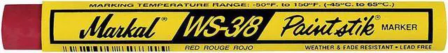 California Proposition 65: This product contains a chemical known to the State of California to cause birth defects or other reproductive harm. Paint Crayon, Actuation Type Not Applicable, Casing Material Wood Holder, Dry Time 12 to 24 hr, Glow-in-the-Dark No, Grade Scanner Compatibility Not Applicable, Hardness Not Applicable, Indoor/Outdoor Usage Indoor/Outdoor, Marker Size Group Fine, Marking Tip Shape Hex, Maximum Application Temperature 150 Degrees F, Minimum Application Temperature -50 Degrees F, Overall Length 4 1/4 in, Pigment Color Red, Pigment Material Paint, Pigment Maximum Surface Temperature Not Applicable. This item has been restricted from sale in the following state (s): []
