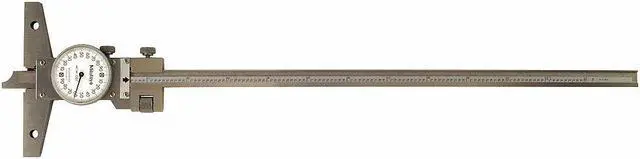 This Mitutoyo 527-313-50 Depth Gauge is the perfect tool for measuring depths on a variety of surfaces. With a blade style depth gauge, you can measure depths up to 12 in. with this dial depth gauge. The fine adjustment allows you to adjust the dialing mechanism more precisely than ever before. This full base length and style ensures it stays where you put it when measuring depths. It has an actuation style that is both easy and smooth to use, while its satin chrome finish gives it a sleek look. The Mitutoyo 527-313 Depth Gauge is the reliable tool that will allow you to get accurate measurements on your projects with ease.