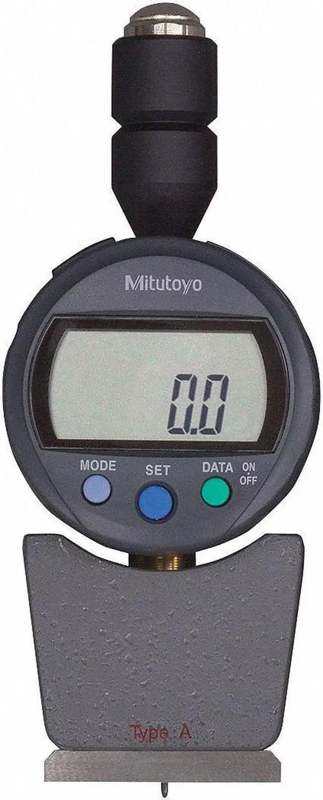 The Mitutoyo 811-338-10 Digital Durometer is the perfect tool for measuring the hardness of objects. It features a sharp point indenter, which can be used to test any material between 20 and 90 on the Shore D scale. The range of this digital handheld durometer is 20 to 90 on the Shore D scale. Its functions include zero set, data/hold and power on/off. It has an 1.73 x 0.71 in location area and a sharp point indenter with a protrusion of 1.73 in., allowing you to measure hardnesses precisely without damaging samples or testing surfaces too deeply.