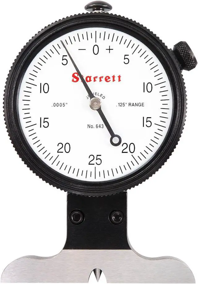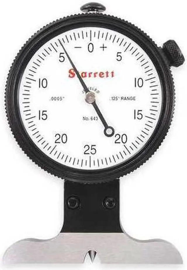 Dial Depth Gauge, Range 0 in to 0.125 in, Graduations 0.0005 in, Accuracy 0.001 in, Long Form Calibration Certificate No, Base Length 2.5 in, Base Style Full, Dial Position Side, Dimension Type Inch, Included Certification No, Number of Measuring Rods 1, Operation Type Mechanical, Range per Revolution 0.05 in, Case Included Yes, Contact Point Shape Needle, Depth Gauge Type Solid-Plunger Depth Gauge with Knife Edge, Dial Color White, Dial Reading 0-25-0, Lock Nut Type -. This item has been restricted from sale in the following state (s): []