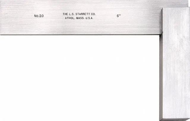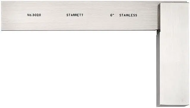 Precision Steel Square, Material Stainless Steel, Angle 90 Degrees, Number of Pieces 1, Outside Dimensions 5-29/32 x 3-29/32 in, Case Included No, Case Type Starrett Logo Cardboard Box, Construction Stainless Steel, Squareness - Inch 0.001 in, With Wide Base No. This item has been restricted from sale in the following state (s): []