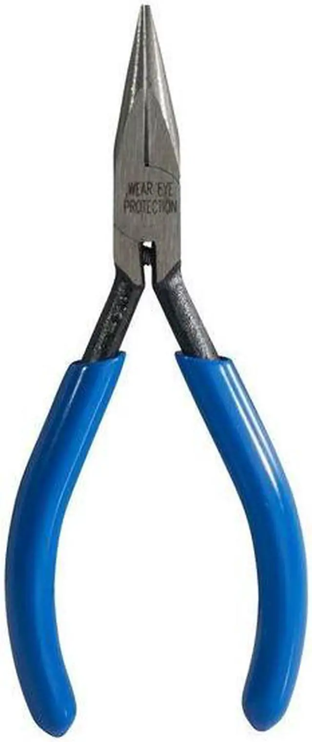 California Proposition 65: This product contains a chemical known to the State of California to cause birth defects or other reproductive harm. Needle Nose Plier, Plier Type Needle Nose Pliers, Nose Shape Straight, Jaw Bend 0 Degrees, ESD-Safe No, Overall Length 4 7/8 in, Maximum Jaw Opening 3/4 in, Jaw Length 1 1/8 in, Tip Width 1/8 in, Jaw Thickness 1/4 in, Insulated No, Non-Sparking No, Voltage Rating Not Rated, Application Electronics, Cutting Capacities Not Specified, Features Thin Nose, Handle Color Blue, Handle Style Dipped. This item has been restricted from sale in the following state (s): []
