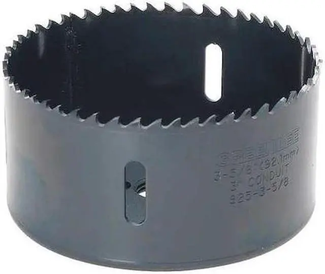 Hole Saw, Primary Material Application Steel, Materials Cut Steel, Arbor Design Arbor Not Included, Tooth Material Bi-Metal, Saw Dia. 3 5/8 in, Teeth per Inch 4/6, Max. Cutting Depth 1 5/8 in, Impact Rated Not Impact Rated, Shank Size 7/16 in, 1/2 in, Pilot Drill Size 1/4 in dia x 4 1/4 in L. This item has been restricted from sale in the following state (s): []