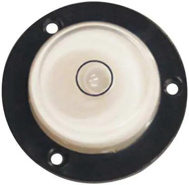 Bulls Eye Level, Overall Height 1/2 in, Overall Length 1 3/16 in, Accuracy 30 Arc Min, Frame Material Plastic, Level Shape Circular with Flange, Mount Type Mounting Hole, Mounting Hole Diameter 1/8 in, Number of Centering Circles 1, Number of Mounting Holes 3, Overall Diameter 1 3/16 in, Vial Material Acrylic, Color Black, Package Quantity 10. This item has been restricted from sale in the following state (s): []