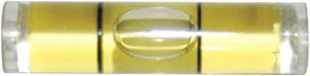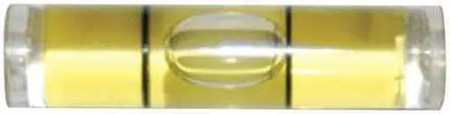 Barrel Vial Level, Overall Height 3/8 in, Overall Length 15/16 in, Accuracy 38 Arc Min, Frame Material Plastic, Level Shape Barrel, Liquid Color Yellow, Mount Type Not Applicable, Mounting Hole Diameter Not Applicable, Number of Centering Circles 1, Number of Mounting Holes Not Applicable, Overall Diameter 3/8 in, Vial Material Acrylic, Color Clear, Package Quantity 25. This item has been restricted from sale in the following state (s): []