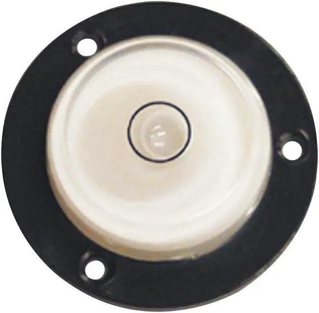 Bulls Eye Level, Overall Height 3/8 in, Overall Length 1 in, Accuracy 53 Arc Min, Frame Material Plastic, Level Shape Circular with Flange, Mount Type Mounting Hole, Mounting Hole Diameter 1/16 in, Number of Centering Circles 1, Number of Mounting Holes 3, Overall Diameter 11/16 in, Vial Material Acrylic, Color Black, Package Quantity 10. This item has been restricted from sale in the following state (s): []