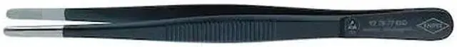 Precision Tweezers, Compatible Wire Thickness - Maximum Not Applicable, Grip Style Knurled, Material Stainless Steel, Overall Length 5 45/64 in, Product Type Precision, Resistance Properties Acid, Magnetic, Corrosion, Tip Angle 55 Degrees, Tip Material Stainless Steel, Tip Shape Round, Tip Style Straight, Tip Texture Serrated, Tip Thickness 1.3 mm, Tip Width 2.7 mm, Features Non-Reflective Brushed Tips, Standards DIN EN 61340-5-1, REACH. This item has been restricted from sale in the following state (s): []