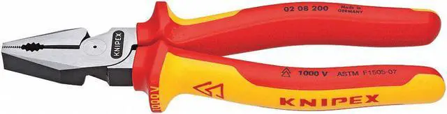 Linemans Plier, Insulated Yes, Includes Voltage Detection Module No, Tether Ready No, Plier Type Lineman's Pliers, Overall Length 8 in, Jaw Shape Flat, Jaw Length 1 1/2 in, Jaw Width 1 1/4 in, Jaw Thickness 5/8 in, Handle Style Ergonomic, Additional Tool Functions Cable Cutter, Wire Cutter, Non-Sparking No, ESD-Safe No, Voltage Rating 1, 000 V, High Leverage Yes, Cutting Capacities 1 in (Copper Cable), 3/32 in (Piano Wire), 7/64 in (Hard Wire), Features Ergonomic Handle, Finish Polished.