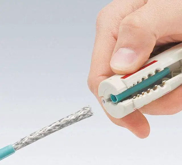 Cable Stripper, Insulated No, Overall Length 4 3/8 in, Capacity 24 to 11 AWG, Cable Type Cat5, Cat6, Cat7, Twisted-Pair (UTP/STP), Standard Tool (Accessory Needed for Tethering), Functions Strip/Cut, Adjustable Manual, Handle Type Cushion Grip, Handle Material Fiberglass Reinforced Polyamide, Features Double Shell, Folding Back Stripping Tool, Includes Opening Spring and Locking Lever. This item has been restricted from sale in the following state (s): []
