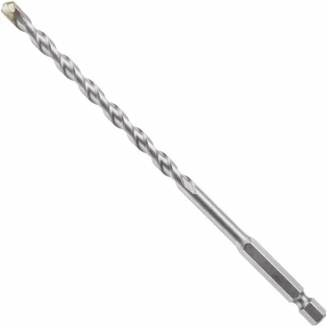 Bosch hex shank hammer drill masonry bits deliver 4X life vs. standard masonry bits, and have been redesigned with hex shanks for use in hammer drills and impact drivers. These bits feature asymmetric diamond-ground carbide tips, which deliver fast drilling and longer bit life in hammer drills and impact drivers. The tips are designed for precise starts and less bit walking. The bit heads are manufactured with exclusive Bosch-made carbide. They have milled U-flutes with deep-cut spirals for fast drilling in block, masonry and concrete. The hex shank provides aggressive gripping power.