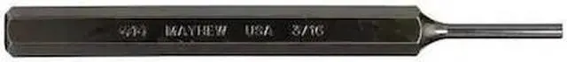 Pin Punch, Length (In. ) 6 in, Tip Size (In. ) 3/16 in, Hex (In. ) 1/2 in, Not Tether Capable, 1-Piece Design, Steel Construction, Black Oxide Finish, Used to Drive Out and Remove Already Loosened Pins and Keys, Meets/Exceeds ASME B 107.410 -2008